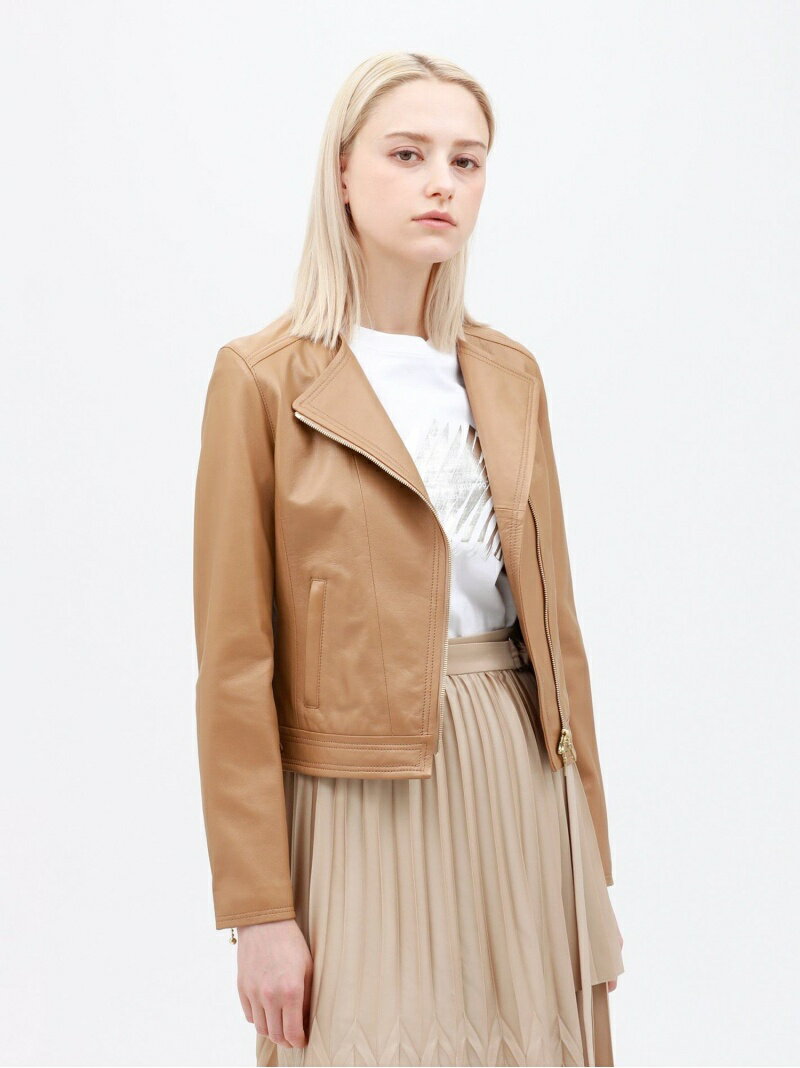 ノーカラージャケット 本革レザージャケット ショートコート レディースアウター 女性用コート 本革ライダースジャケット バイカー アウター 着やせ ladies