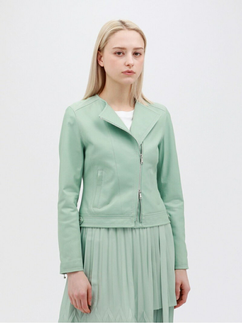 ノーカラージャケット レザージャケット レディース ファー 本革 革 ラム イタリア イタリー ジャケット ラムレザー シープスキン ライダースジャケット レザーコート レザー アウター カジュアル ジャケットライダース フォーマル プラウ PRAU 春