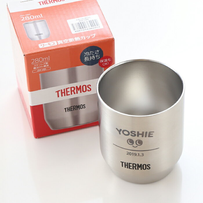 名入れ カップ タンブラー 《 サーモス 真空断熱カップ 280ml ヘアライン 》 JDH-280S THERMOS コーヒー 紅茶 ビール 焼酎 晩酌 湯呑み お誕生日 還暦祝い プレゼント 名前入り ギフト 名入れギフト 送料無料 父の日 あす楽 即日発送 母の日 父の日 最短 女性 男性 子供