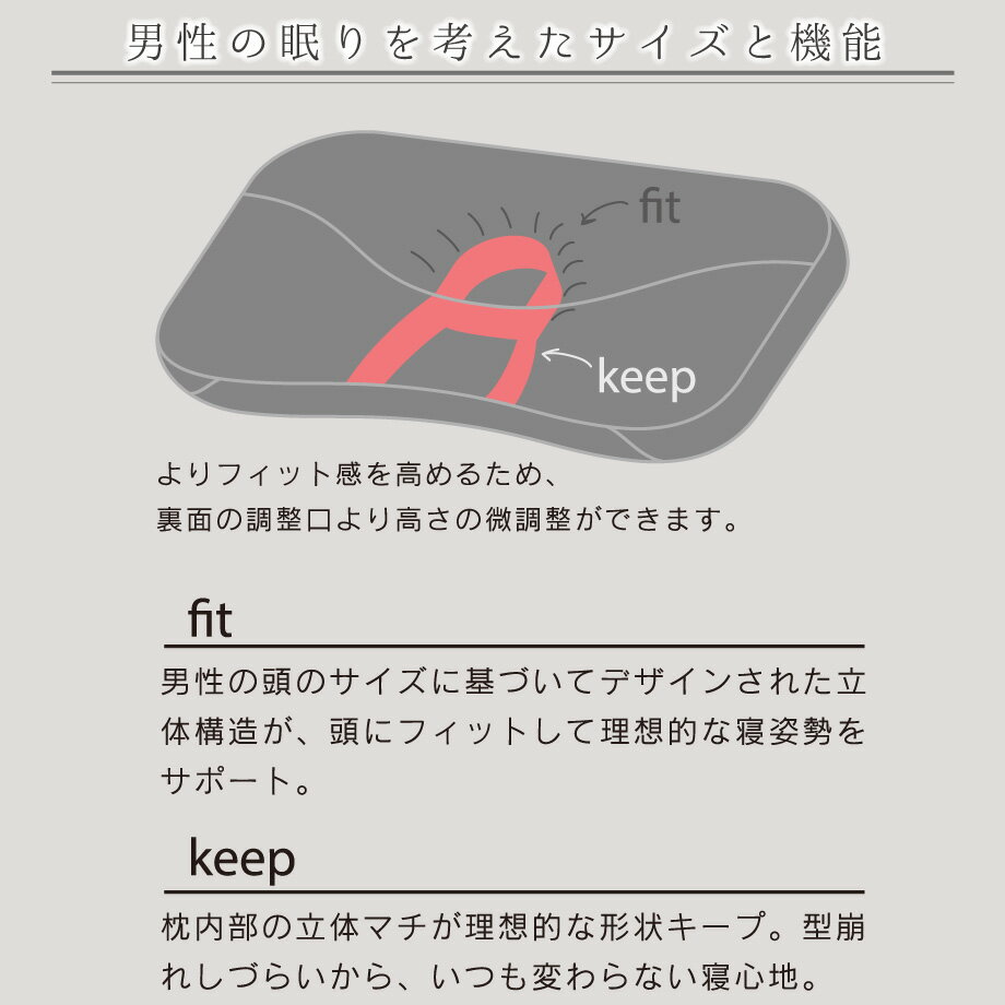 商品説明 『キチントネ メン』 眠りの大切さを感じはじめた男性へ自然に寝姿勢が整う立体構造デザイン枕。