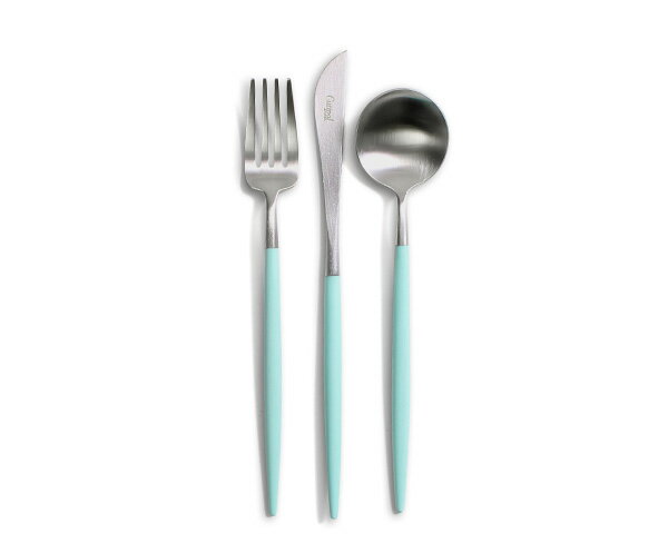 クチポール ゴア ターコイズ デザート3点セット(デザートナイフ・デザートフォーク・デザートスプーン) Cutipol GOA [ネコポス対応可(6セットまで)] 【正規販売代理店 カトラリー ブラッシュド マット】
