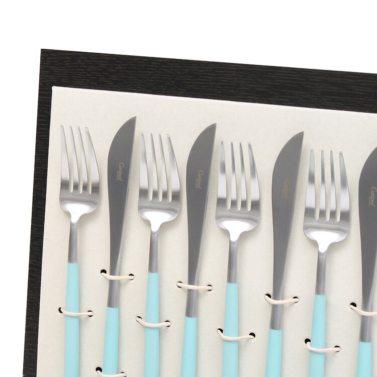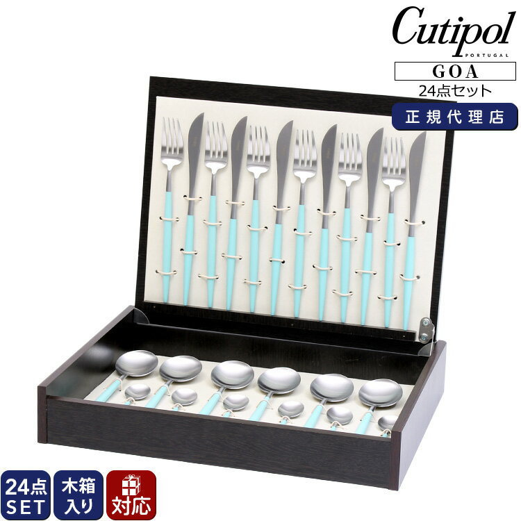 クチポール ゴア ターコイズ ディナー24点セット (ナイフ・フォーク・スプーン・コーヒー/ティースプーン) 収納木箱入り Cutipol GOA 【正規販売代理店 テーブル カトラリー ブラッシュド マット ギフトボックス】
