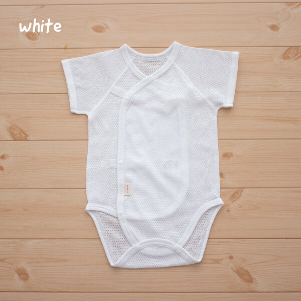 ●商品内容 ・半袖打ち合わせロンパース(スナップボタン式)×1枚 ・サイズ:60-70cm ・生地:やわらかメッシュ(綿100%) ・柄/カラー:無地(ホワイト)/ヨット柄(ピンク)/ヨット柄(ブルー) 3柄展開 ・日本製 ●ロンパースの特徴 ・通気性が良く、柔らかいメッシュ生地を使用しています。