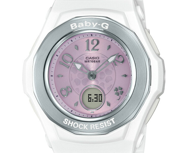 カシオ ベビーG 電波 ソーラー ウィッシング・グローバー・ダイアル ホワイト&ピンク BGA-1050CD-7BJF CASIO BABY-G 四つ葉のクローバー デジタル&アナログ コンビネーション 白 レディス レディース 腕時計 (BGA1050CD7BJF) 【あす楽】